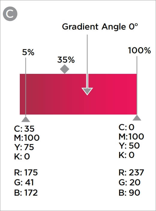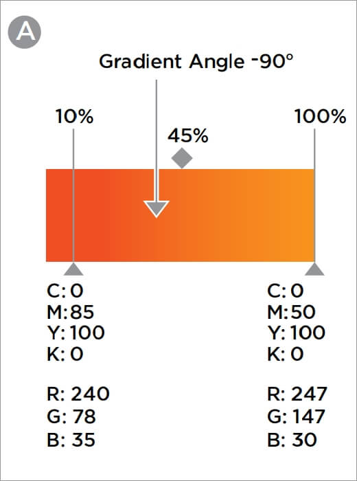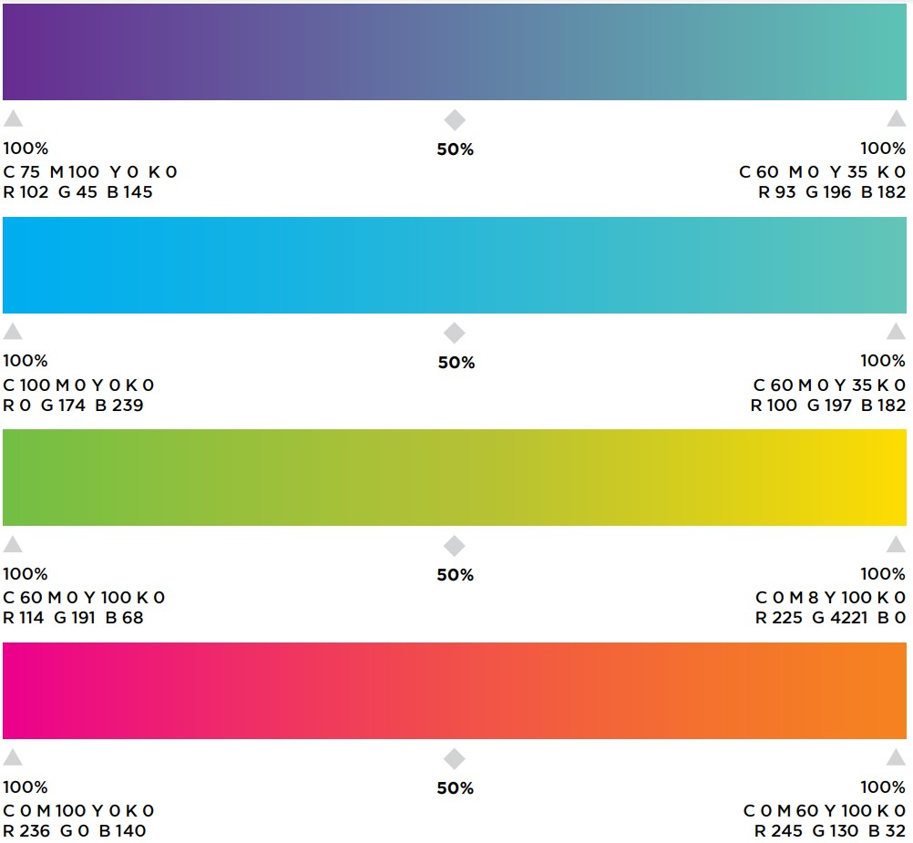 The secondary colour palette consists of a light colour range and gradient colour range.