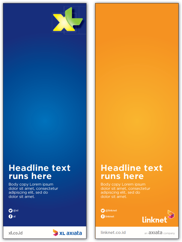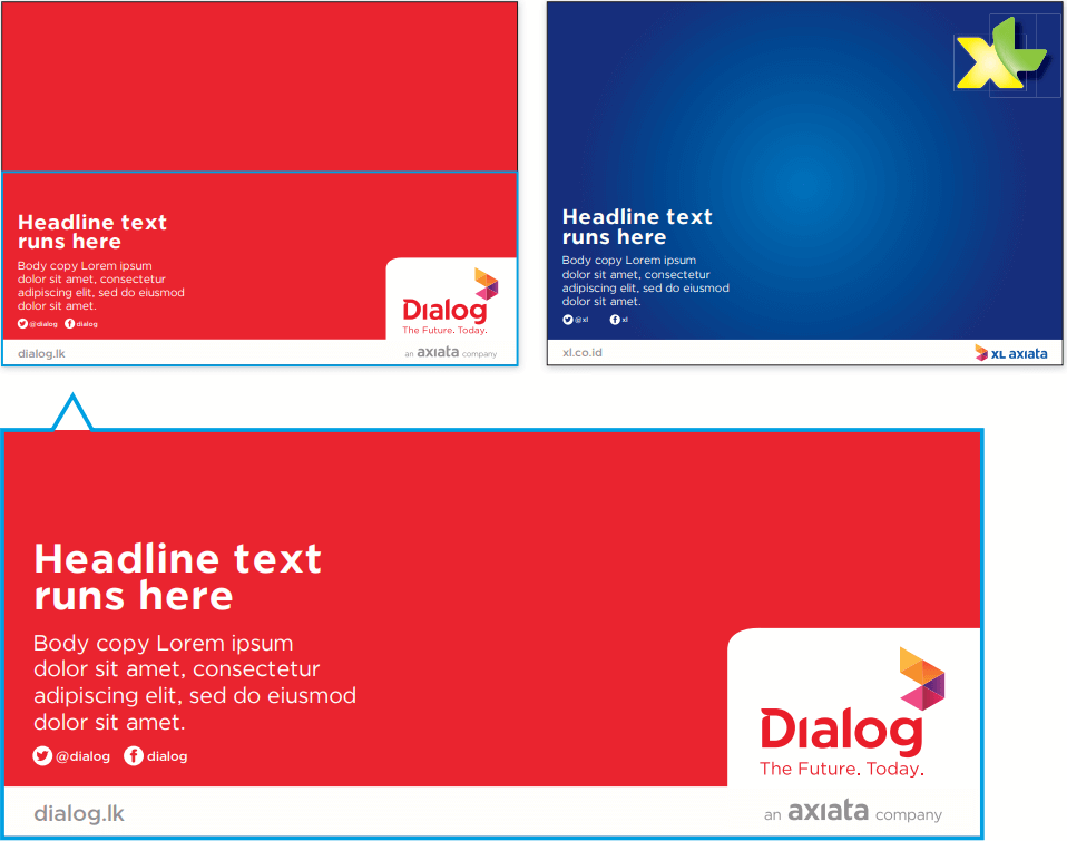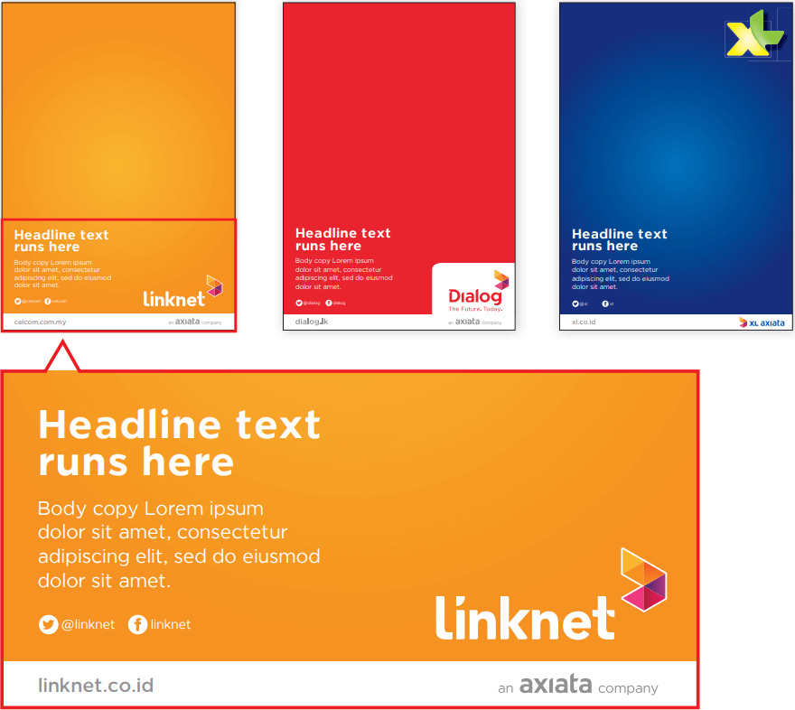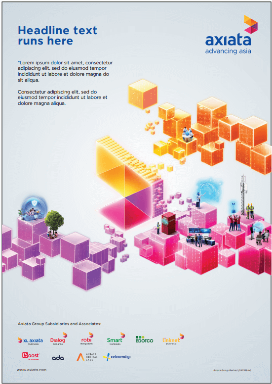 Axiata endorsement on right and left is OpCos web address (URL).