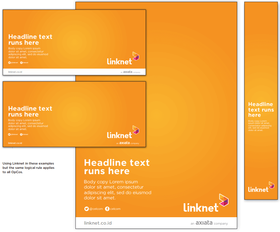 The endorsement for ‘an axiata company’ should be always apply below the OpCos brand