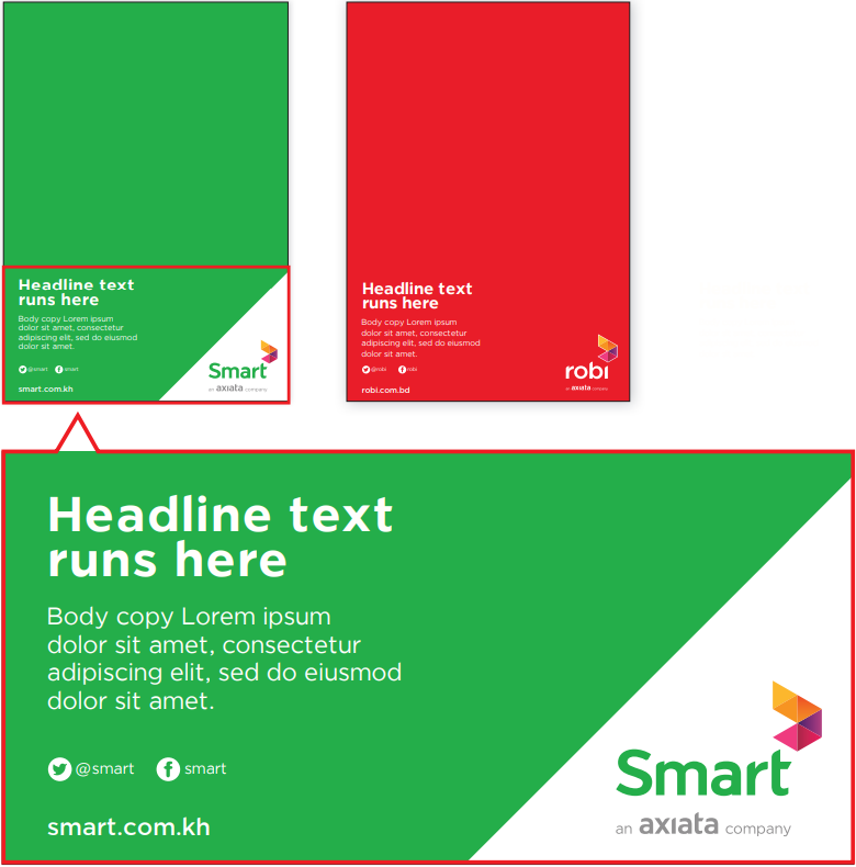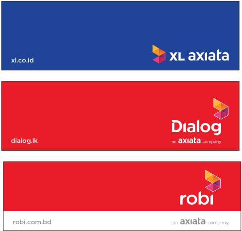 The endorsement for ‘an axiata company’ should always be placed below the OpCos brand