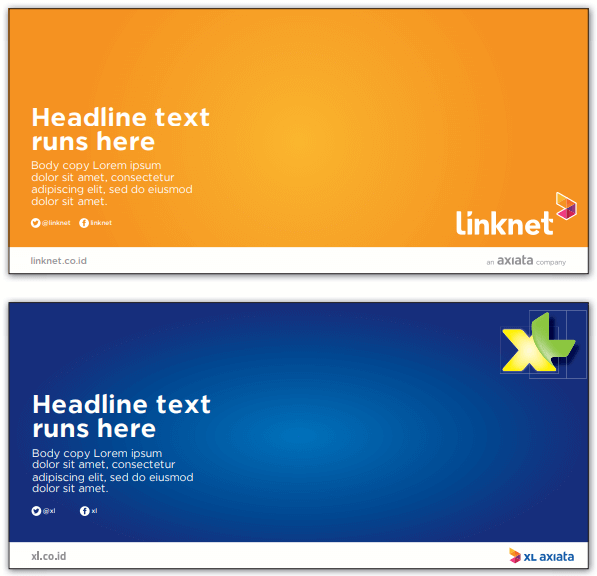 The preferred type style for the product and sub-brand line is Axiata corporate set in lower