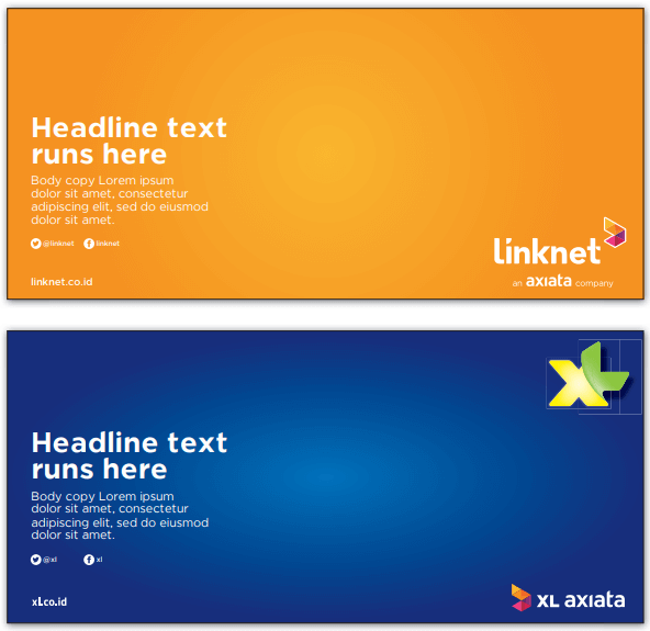 The font colour of “an axiata company” should be in white when applied on full bleed.